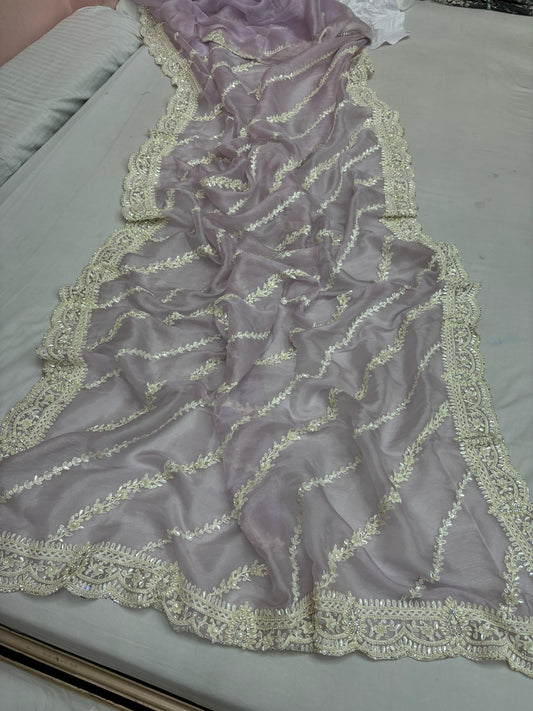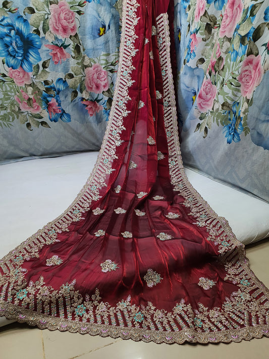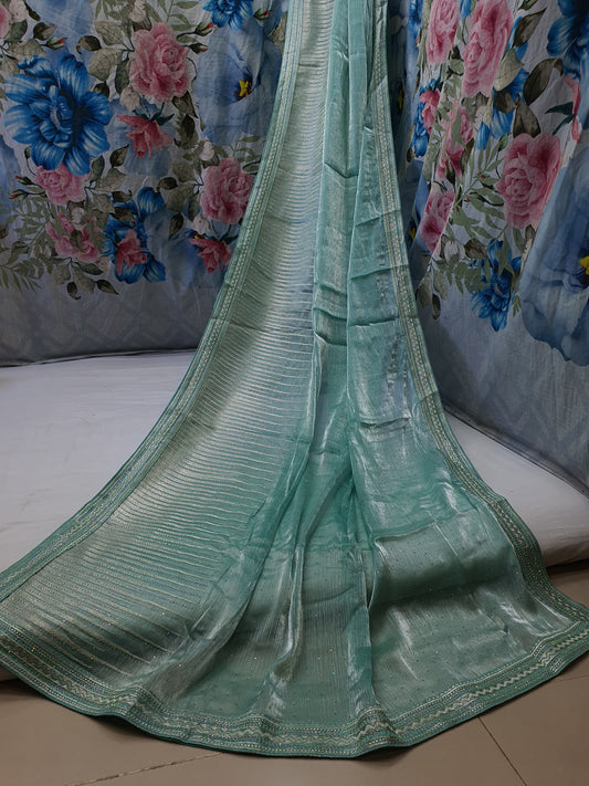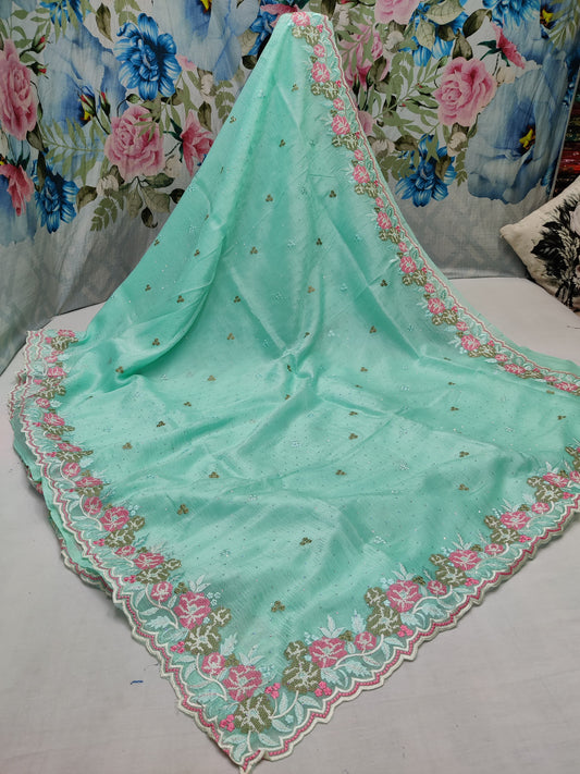 Allover crosstich work border and allover swaroski stone on crush chiffon* Saree