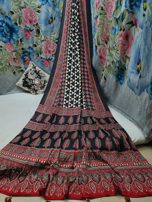 AJRAKH PRINTED ON MODAL SILK CREPE Saree*