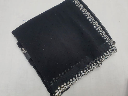 ALLOVER JARKAN STONE BORDER AND SELF SWAROSKI STONE ON GEORGETTE*Saree