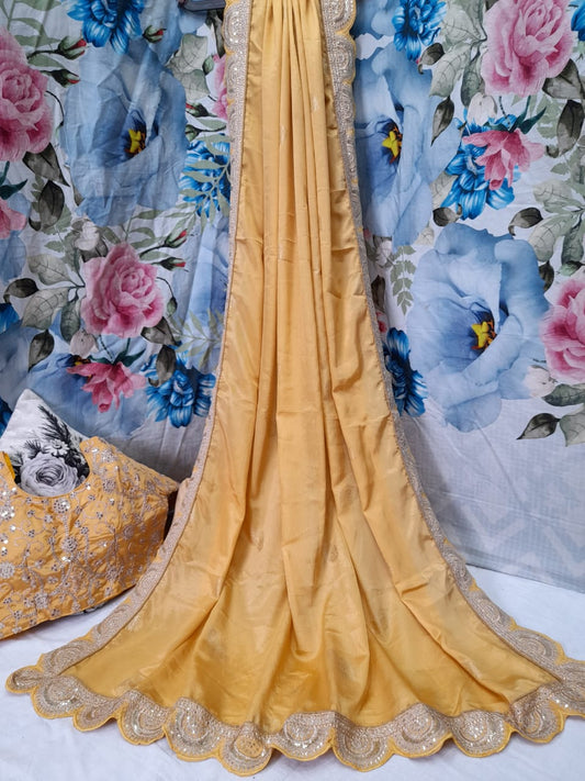ALLOVER FOIL PRINTED ON VICTRA SILK AND EMBORIDARY DESIGNER BORDER*saree